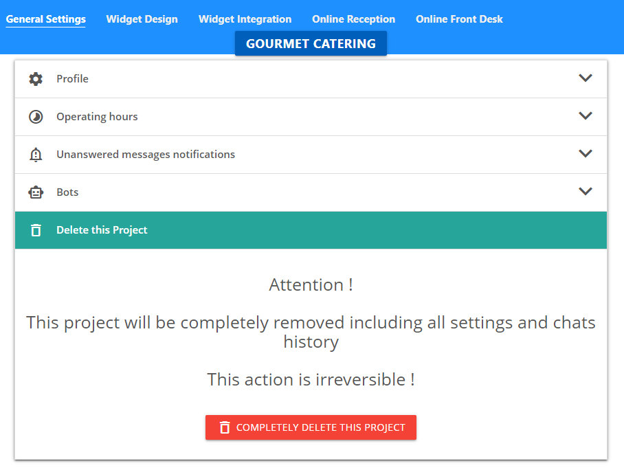 Key parameters of the Project Make sure all fields are filled in correctly. This information is used in many modes including the Online Reception and is visible to your customers