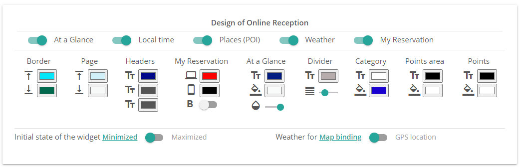 You can fully configure what it looks like and what information does your Online Reception contain. On this page you can set up: