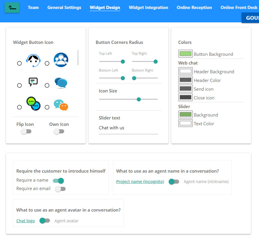 On the right side of the screen, your website with an integrated Live Chat Widget will be available to you, where all the changes made in the settings will be updated in real time.
