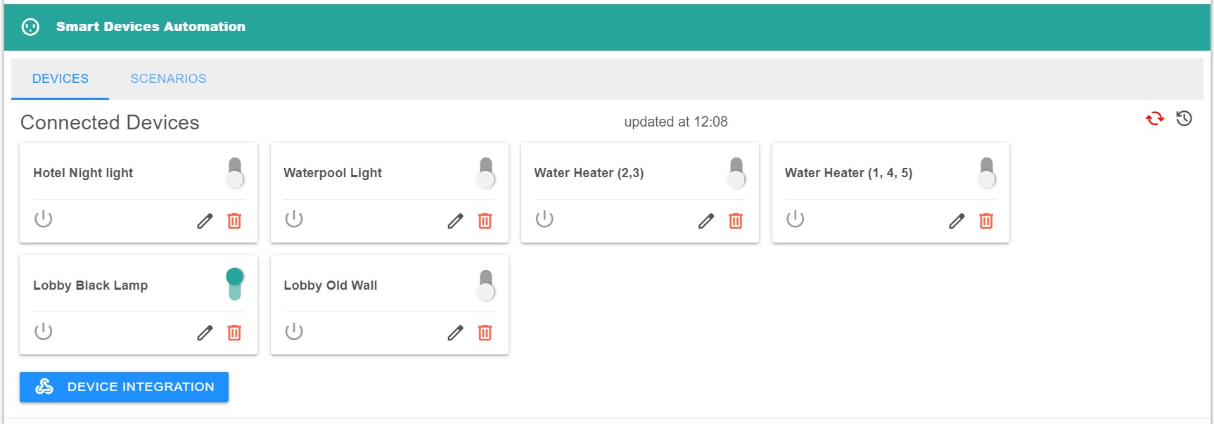 You will see all integrated smart devices of the project and the Device Integration button for adding new ones.