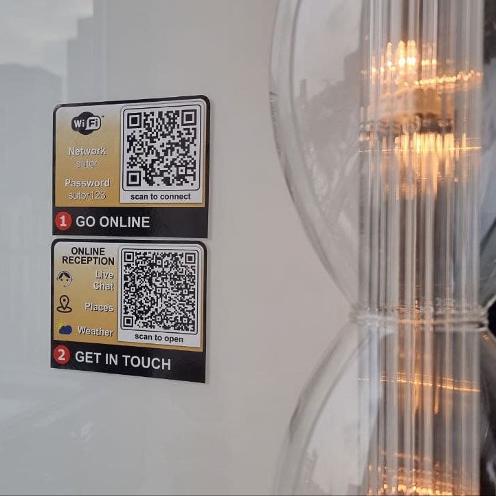 Your customers by scanning this QR-code will be able to open your Online Reception. br>Print or order from the agency plates and stickers with the QR-code You can use the built-in editor to design your QR-code signs and stickers. You can also download ready-made QR-code and order the production of plates and stickers in a professional agency