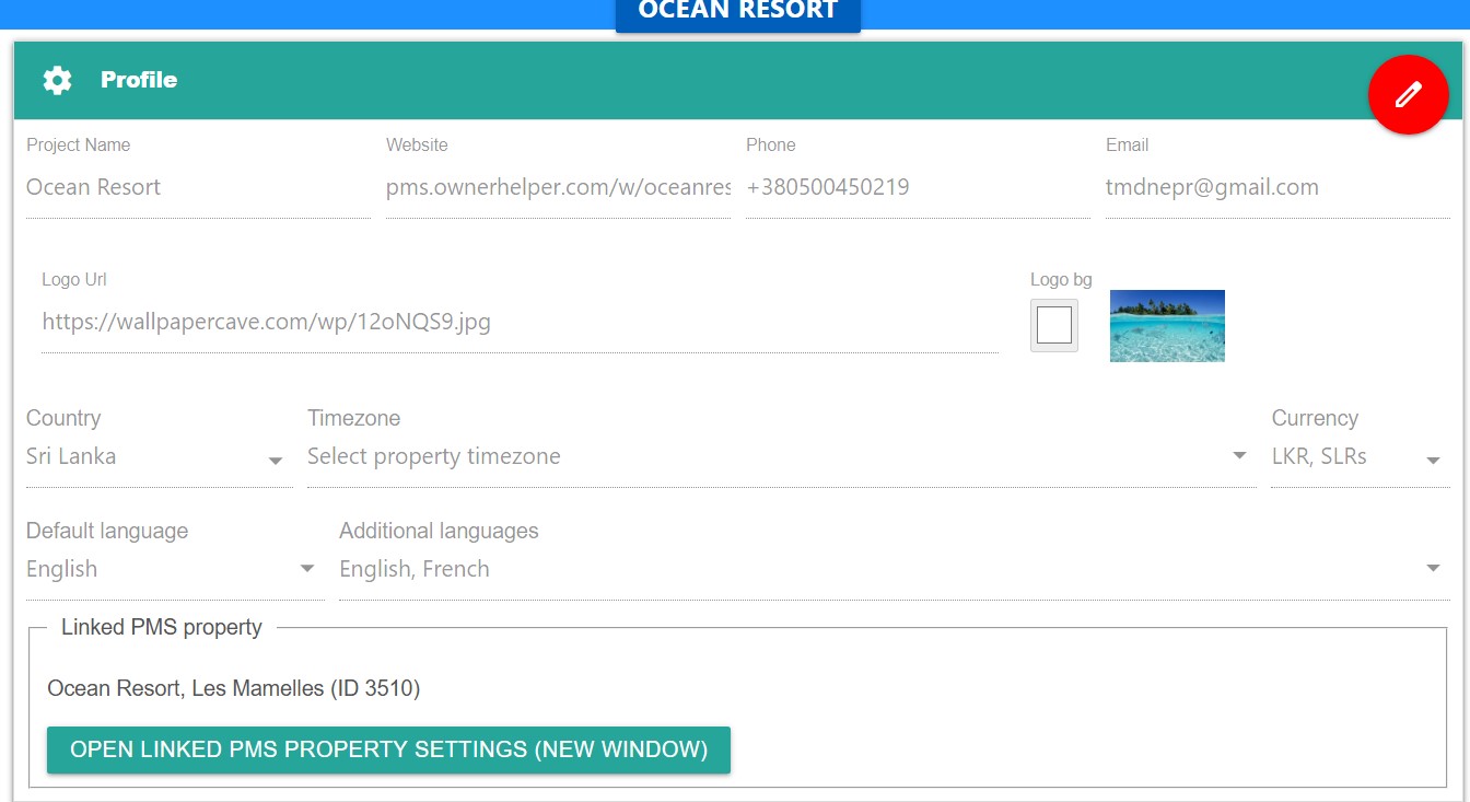 Key parameters of the Project Make sure all fields are filled in correctly. This information is used in many modes including the Online Reception and is visible to your customers