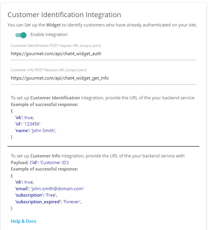 You can set up the Widget to identify customers who have already authenticated on your website. To set up integration,provide the URL of your backend service