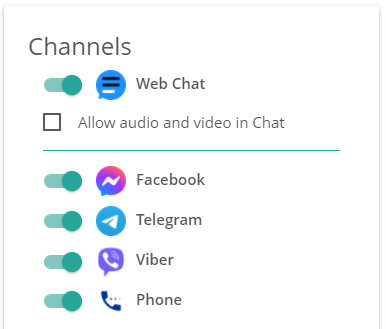 For a Widget used to support website visitors, only use the Web Chat channelwith the Audio/Video optionswitched off